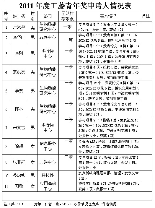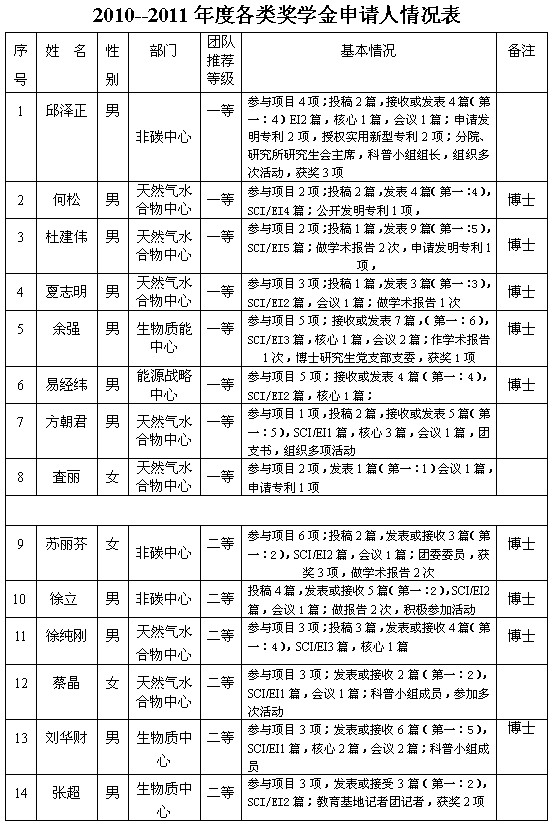 2010--2011年度工藤奖励金暨研究生院奖学金申请人情况表公示