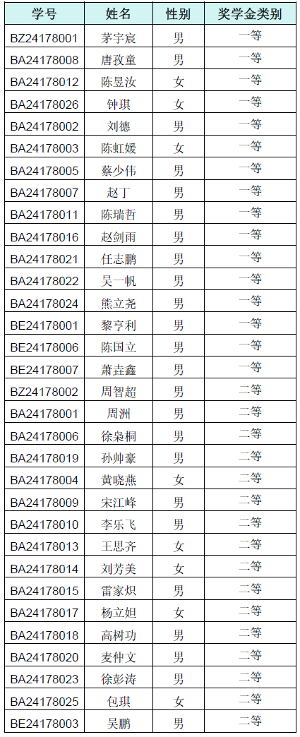 各位同学: 根据《中国科学技术大学研究生学业奖学金实施细则》的有关规定,现将中国科大能源学院(德彩网)2024级博士研究生学业奖学金获得名单公示如下:
