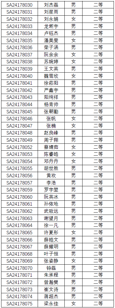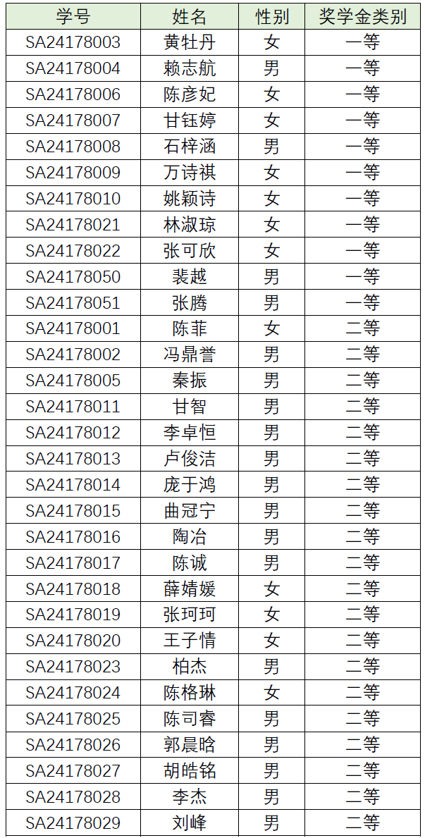 各位同学: 根据《中国科学技术大学研究生学业奖学金实施细则》的有关规定,现将中国科大能源学院(德彩网)2024级硕士研究生学业奖学金获得名单公示如下: