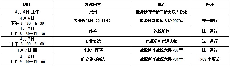 1、本次复试为差额复试。复试分数线为单科50/80,总分320。 2、参加复试人员请填写好《中国科学院研究生院招收攻读硕士学位研究生考生个人简历及自述》和加盖学校或单位公章的政治思想审查表,与身份证、学历(学位)证明或在学学生证和一寸照片一张一同携带来所。 3、能源所不安排住宿;住宿,饮食,体检费等相关费用,由学生自己承担。体检费约120元。我所设有招待所,可自行联系020-87057312。 |