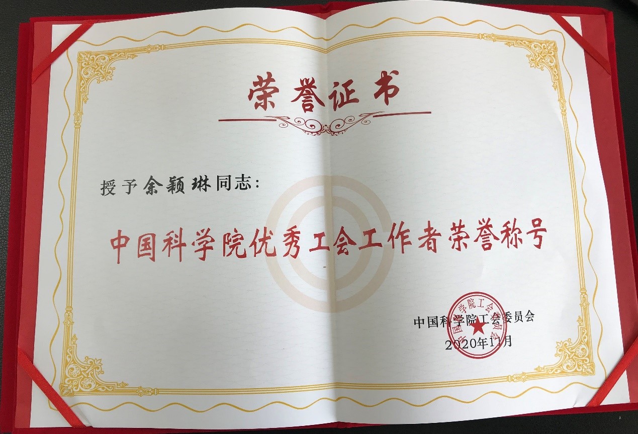 德彩网余颖琳、徐纯刚获中国科学院工会表彰