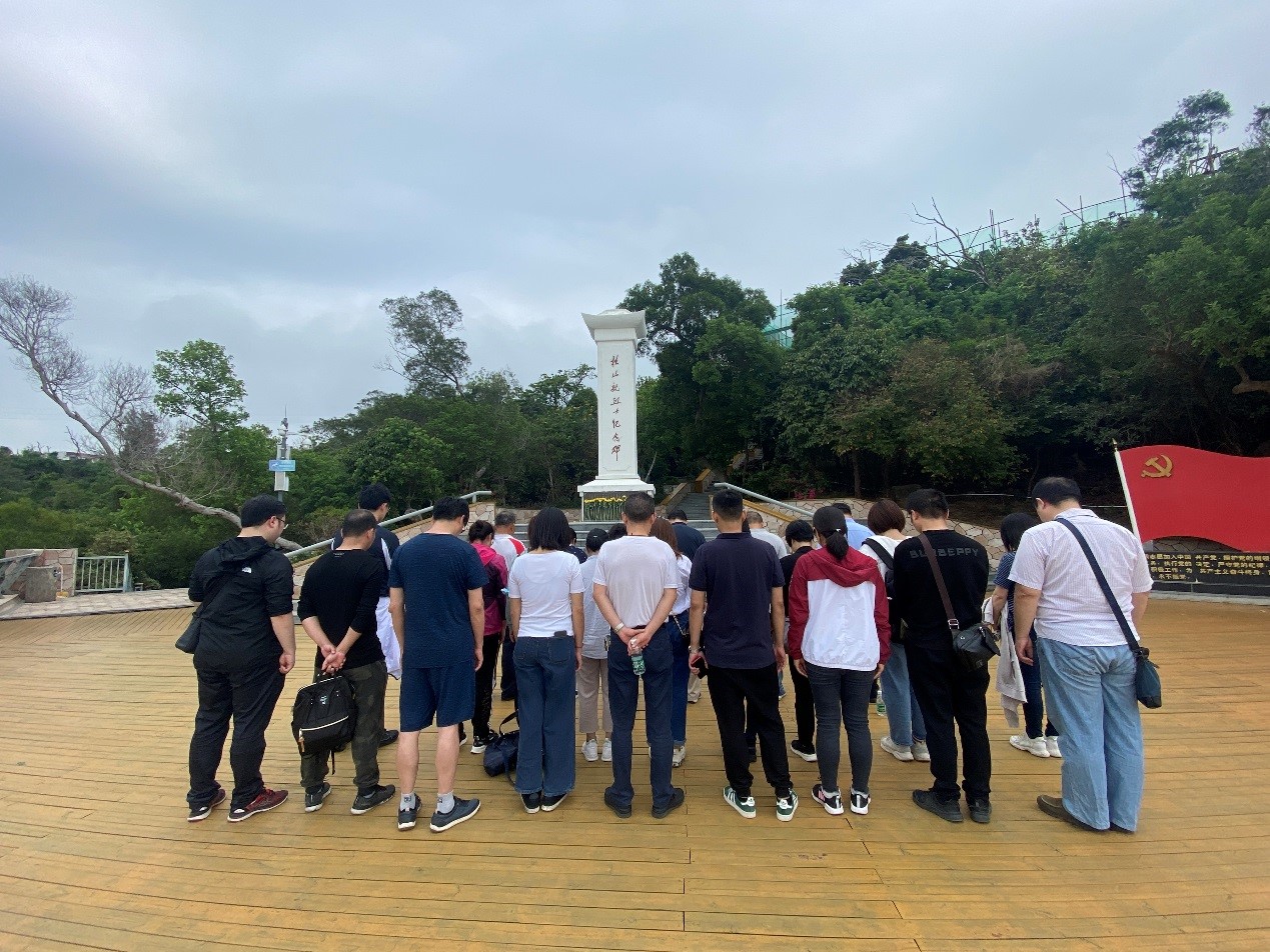 下午,全体党员参观了“珠海市党史党性教育基地”-桂山岛桂山舰纪念公园。1950年5月25日,万山群岛战役打响。战斗中,中弹着火的“桂山号”在垃圾尾岛吊藤湾抢滩登陆。经过半日的激战,桂山号在中弹着火后不得不强行登岸。该舰所有船员及搭载的百余名战士均在登陆战中阵亡。为缅怀“桂山号”的英勇业绩,1954年垃圾尾更名为“桂山岛”。桂山舰纪念公园即为纪念在解放万山群岛战役中率先登陆的“桂山号”军舰而建。参观结束后,全体党员在党旗下重温了入党誓词,并在桂山舰烈士纪念碑前向革命烈士默哀致敬,以此深切缅怀革命烈士,立志继承和发扬革命先烈的崇高品质和革命精神。