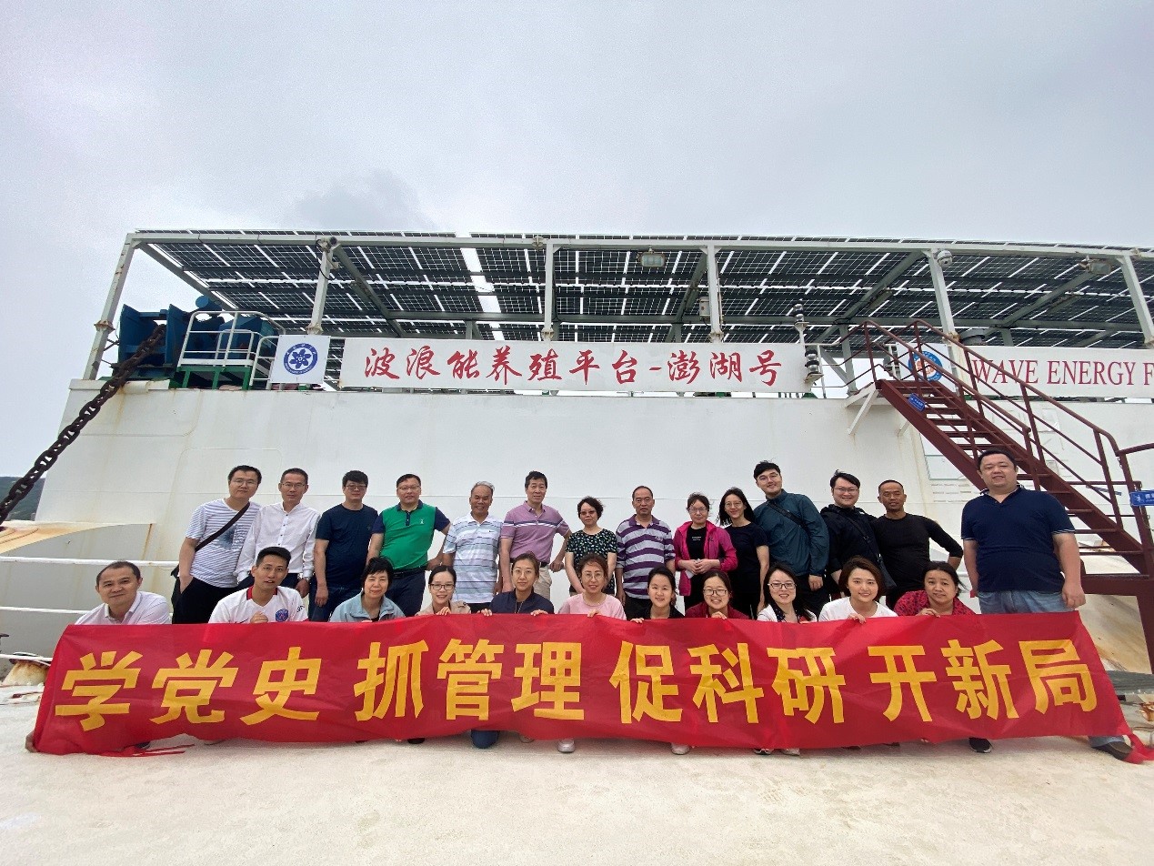 17日上午,在海洋能研究室吝红军高级工程师的陪同下,全体党员乘船出海登上正在实海况运行的半潜式波浪能养殖旅游平台“澎湖号”,详细了解了平台的工作原理、研建历程和实海况示范效果,观摩了设备的波浪能发电、数据监控、自动投饵等运行情况。半潜式波浪能养殖旅游平台“澎湖号”是海洋能研究室基于数十年波浪能平台研究经验和养殖企业需求而研建完成的,平台集波浪能发电和太阳能发电于一体,实现了能源供应自给自足,浮起后可开展拖航、检修、网箱清理和消毒等工作,下潜后即可开展养殖作业。该技术已获中国、欧盟、日本、加拿大发明专利授权。