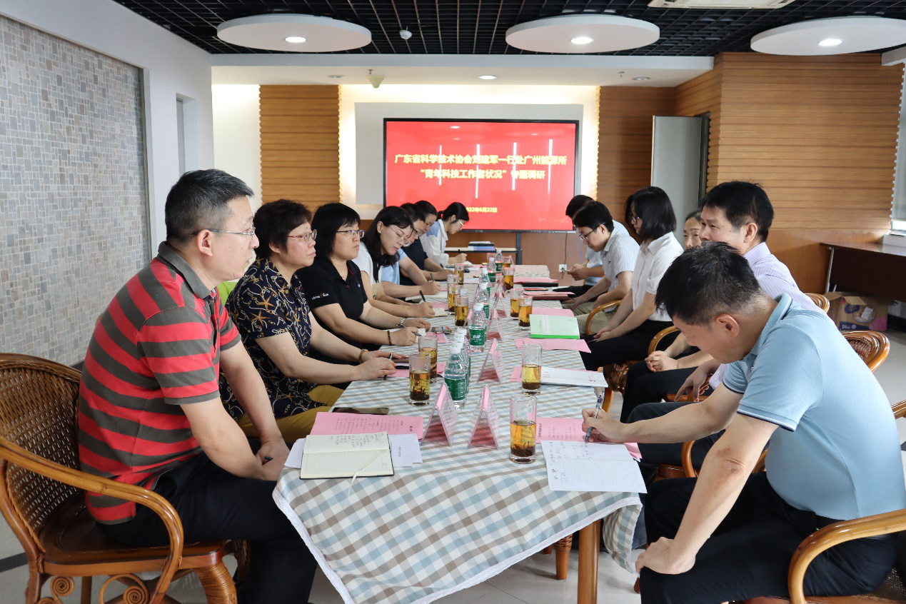 6月22日上午,广东省科学技术协会党组成员、专职副主席刘建军一行莅临广州能源研究所开展青年科技工作者状况专题调研。德彩网党委书记、副所长夏萍,青年科技工作者及管理部门代表等10余人参加调研会。