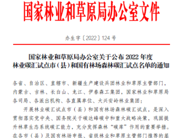 为深入贯彻落实党中央、国务院关于碳达峰碳中和重大战略决策,巩固提升林草生态系统碳汇能力,充分发挥森林“碳库”的重要作用,助力“双碳”目标如期实现,国家林业和草原局办公室在2022年7月份发布了《关于组织申报林业碳汇试点市(县)建设项目的通知》,在全国31个省、市、自治区、直辖市开展森林碳汇试点遴选。各地政府高度重视,组织重点力量积极申报,争当国家森林碳汇试点地区。