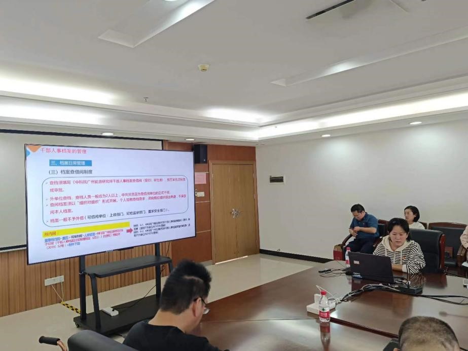 人事教育处洪敏仁作题为《干部人事档案管理》工作报告,结合工作实际,详细讲解了干部人事档案材料规范以及常见业务注意事项,并分享了工作收获和心得体会:身处故纸堆,心中有激情;心存敬畏,高度负责;整理好职工的一段人生,也会增强个人获得感。