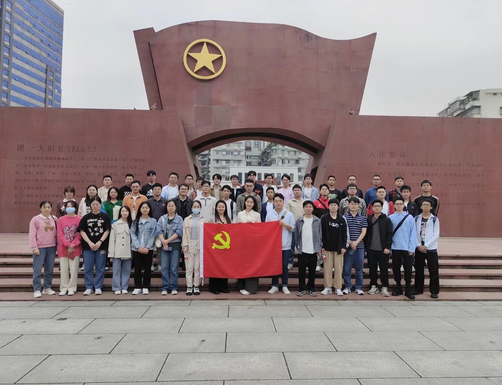 随后,同志们来到团一大纪念馆。团一大纪念馆采用岭南传统园林式布局设计,通过深挖历史文化资源、运用前沿科技手段,生动展现百年来广东共青团不断团结引领青年奋勇向前,无数广东青年坚定不移跟党走,为党和人民不懈奋斗的历史画面。忆往昔峥嵘岁月稠,通过观看一件件文物史料、一段段铿锵有力的文字、一帧帧视频画面,同志们仿佛置身于历史的风起云涌,窥探到那一代青年追求真理、不懈奋斗的精神风貌。