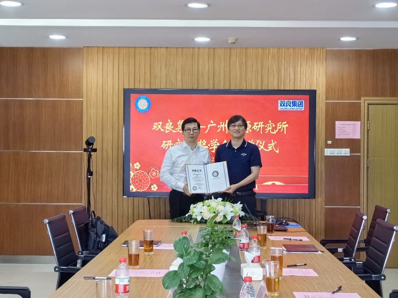 会上,双方还举行了“双良集团-广州能源研究所碳中和奖学金”捐赠仪式。黄宏宇为缪文彬颁发奖学金捐赠证书,并对缪文彬慷慨助学致以诚挚的感谢。