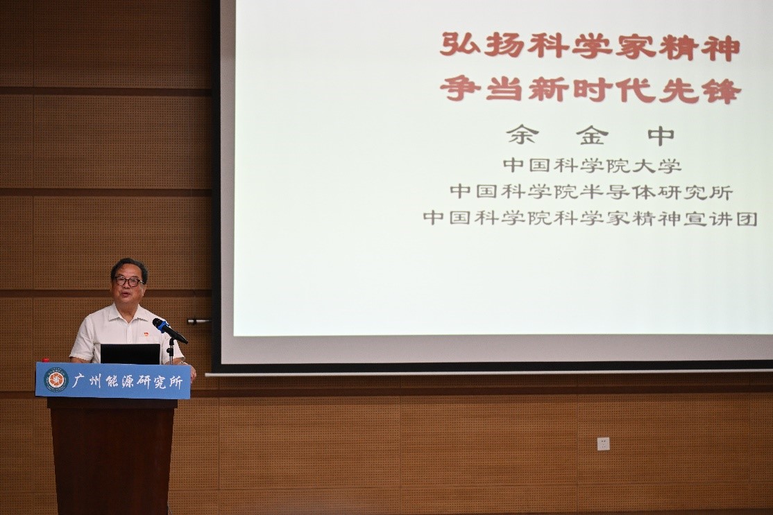 会议还邀请了中国科学院科学家精神宣讲团成员、中国科学院半导体研究所研究员、中国科学院大学余金中教授作《弘扬科学家精神 争当新时代先锋》的专题报告。