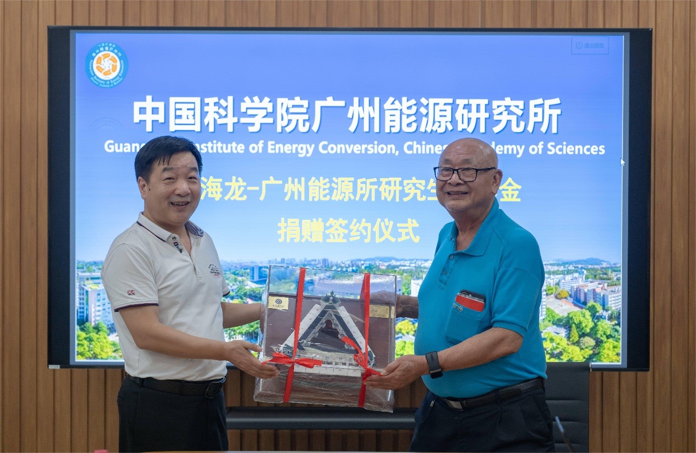 随后,余颖琳代表研究所签署了捐赠协议。侯红明向李亦权赠送海洋能科技成果模型纪念品。