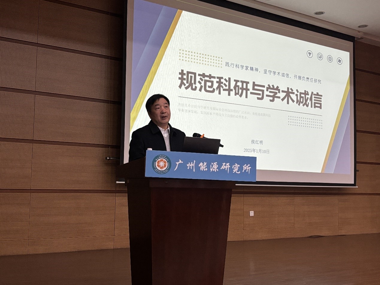 侯红明作科研诚信报告,他首先强调,科学研究是以诚实守信为基础的事业,科研诚信是科技创新的基石,是科研人员必须坚守的底线。报告结合国家自然科学基金项目的特点,详细介绍了在国家基金项目的申请与执行过程中可能涉及的科研诚信问题,并通过多个科研诚信案例,警醒科研人员需践行科学家精神,坚守学术诚信,开展负责任研究。