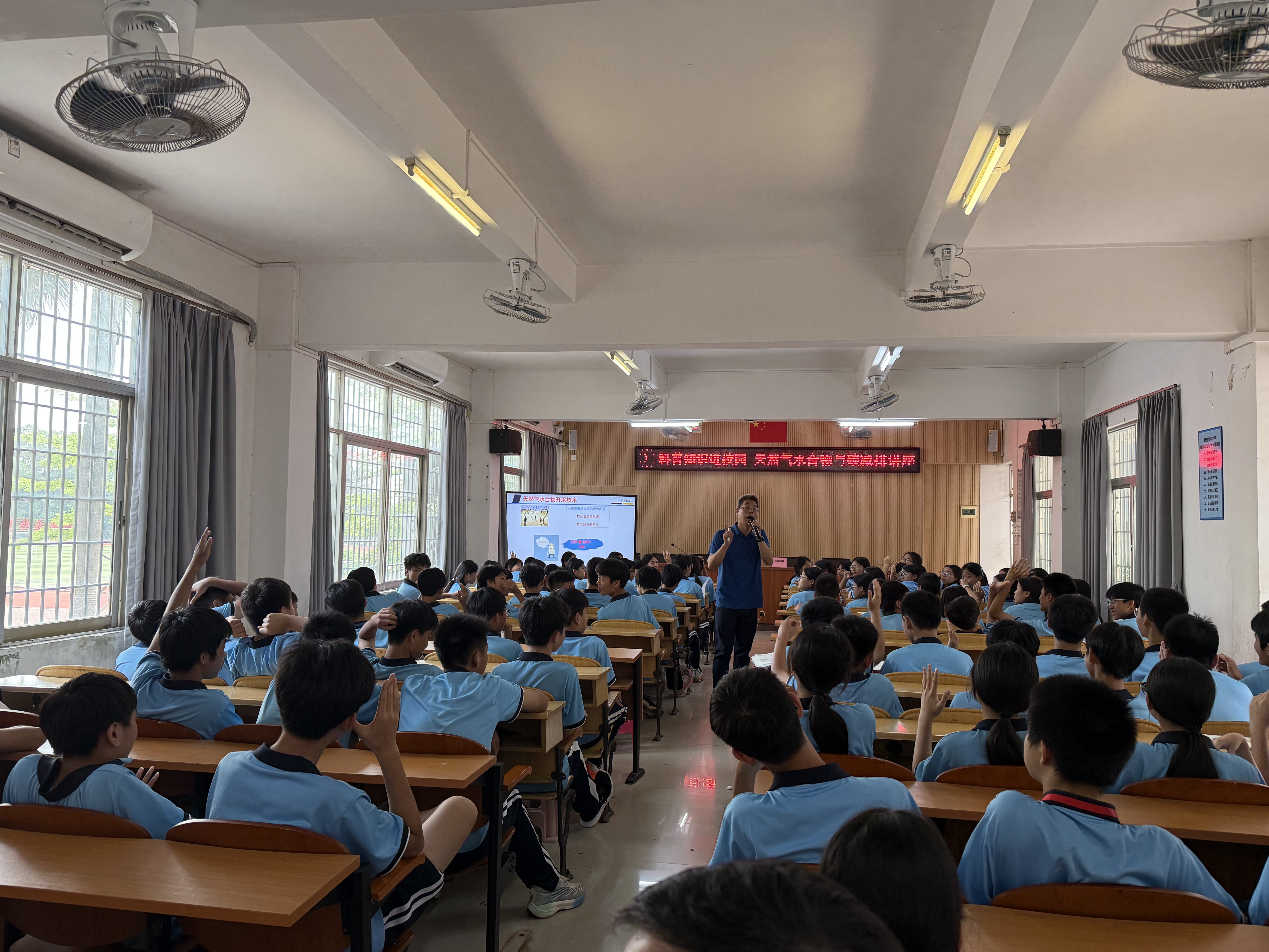 会后,德彩网专家团成员前往东平中学,天然气水合物研究中心研究员徐纯刚作《可燃冰与碳封存》科普讲座。徐纯刚从身边的事例切入,引导学生思考并理解可燃冰燃烧的原因、形态及微观结构等知识,让学生对可燃冰有了初步认识。