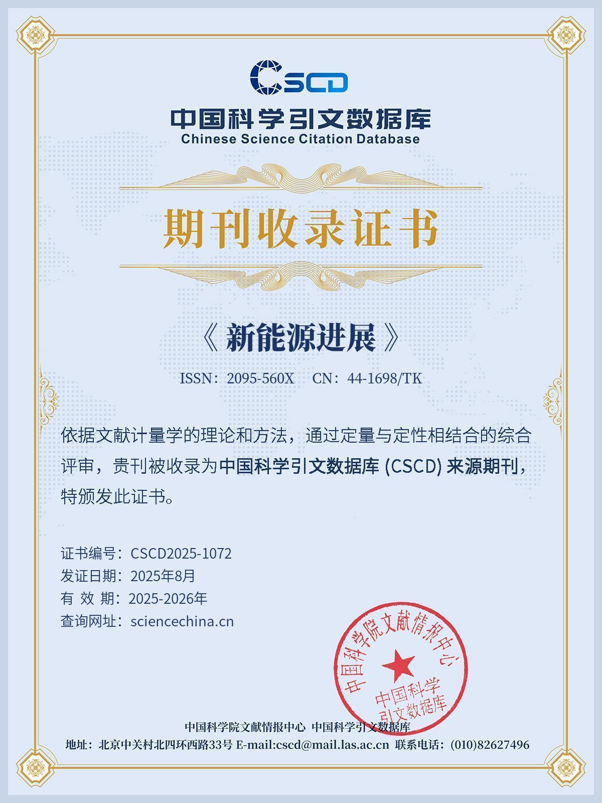 近期,德彩网主办学术期刊《新能源进展》入选2025-2026年度中国科学引文数据库(Chinese Science Citation Database,简称CSCD)核心期刊。中国科学引文数据库来源期刊每两年遴选一次,经过定量遴选和专家定性评估,2025-2026年度中国科学引文数据库收录来源期刊1464种,其中核心库1098种,扩展库366种。《新能源进展》2023-2024年度、2025-2026年度连续入选核心库。
